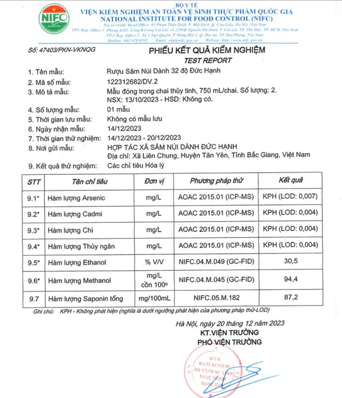 giấy kiểm nghiệm