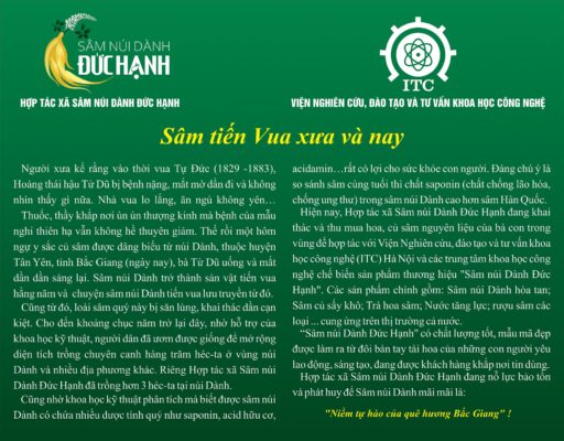 HTX Sâm núi Dành Đức Hạnh là cơ sở tập trung vào trồng và chế biến sâm núi chất lượng cao để mang lại những sản phẩm có giá trị dinh dưỡng tốt nhất. HTX sâm núi Dành Đức Hạnh sở hữu các vườn cây sâm núi được trồng và chăm sóc bằng phương pháp tự nhiên và bền vững.Đội ngũ thành viên trong HTX là những người có kinh nghiệm và kiến thức sâu về trồng cây sâm núi, đảm bảo quy trình sản xuất được tiến hành theo các tiêu chuẩn chất lượng cao.