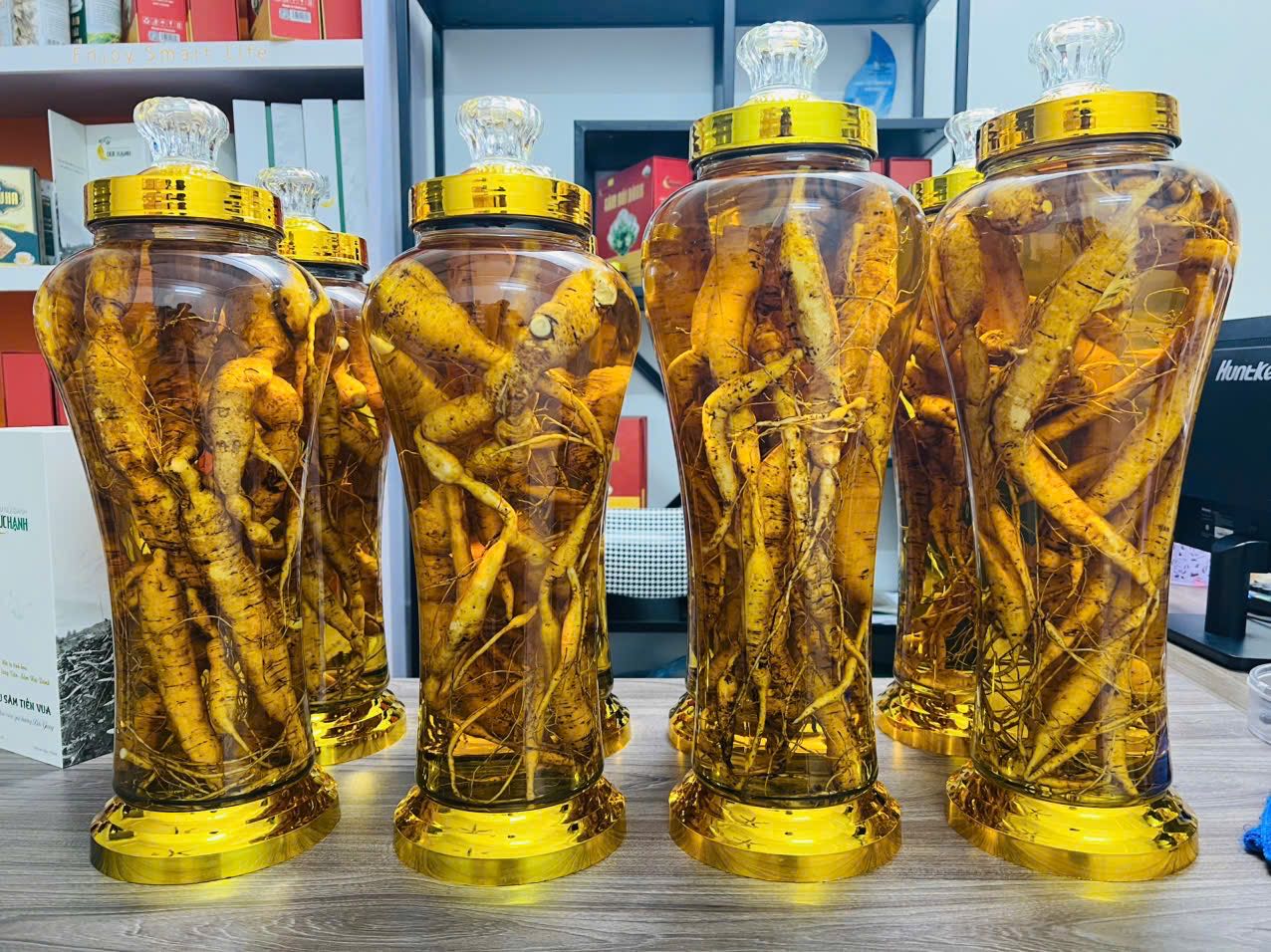 Nguyên liệu: Sâm Núi Dành tự nhiên được lựa chọn kỹ lưỡng, ngâm trong rượu cao cấp để giữ trọn hương vị và dưỡng chất.